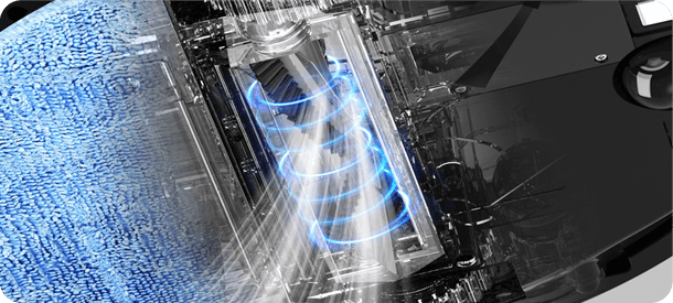 ダストボックスと水タンクが一体化。吸引と水拭きを同時に行うことで、掃除時間を大幅に短縮。