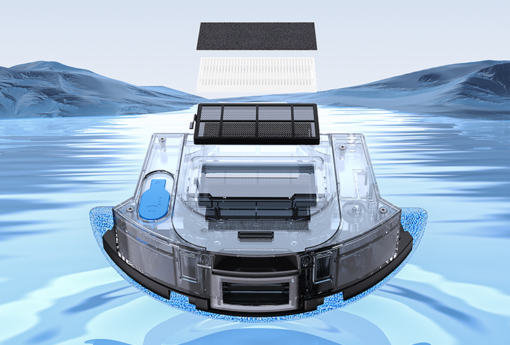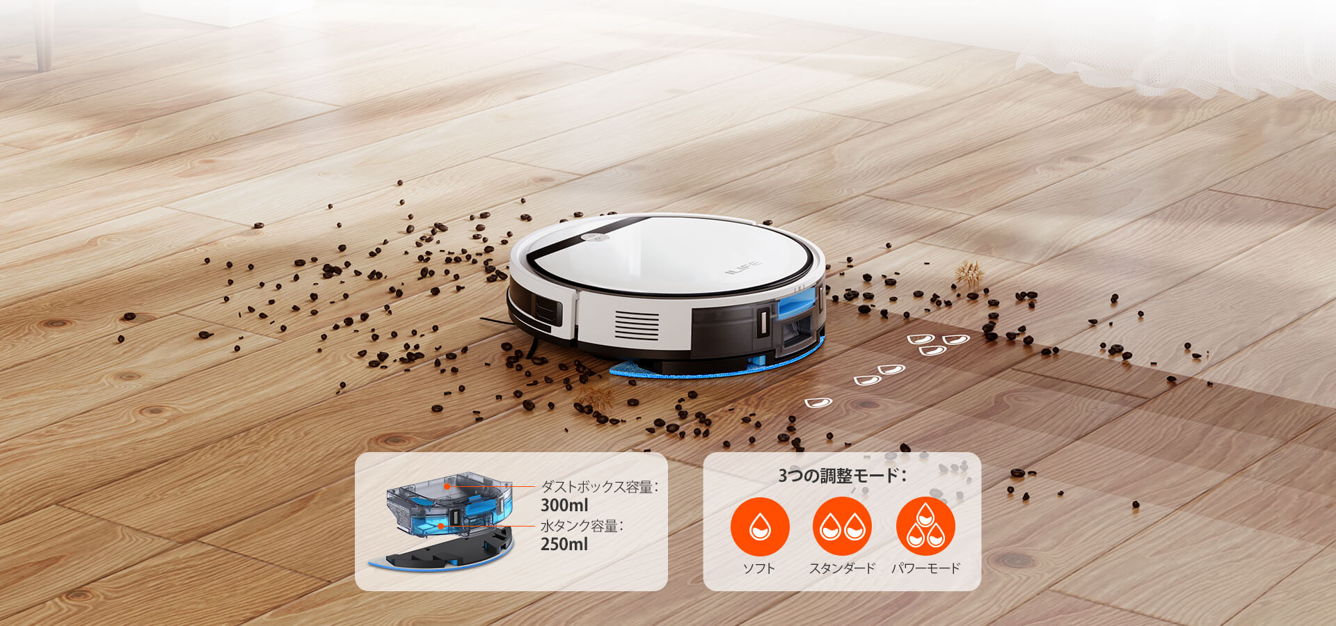 V3xは電子制御された水タンクを使用して、同時に掃除とモップを行い、時間と労力を節約します。